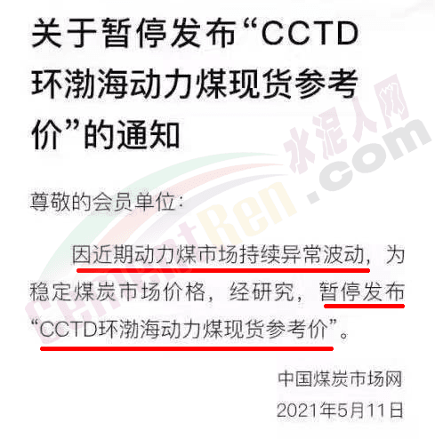 5月11日,中國煤炭市場網通知:“因近期煤市持續異常波動,為穩定市場價,經研究,暫停發布環渤海動力煤現貨參考價... ...”