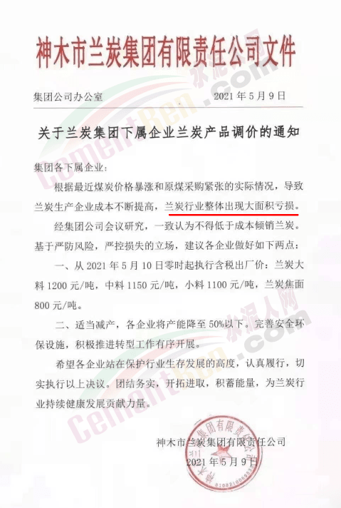 神木市蘭炭集團有限責任公司通知,由于煤炭價格暴漲和原煤采購緊張的實際情況,導致蘭炭生產企業成本不斷提高,蘭炭行業出現大面積虧損。