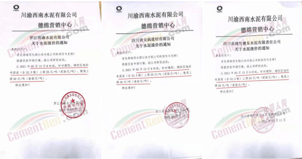 據四川德陽、綿陽地區水泥廠相關人員反饋,該廠采購的煤炭自春節以來,價格累計上漲180元/噸,目前到位價已經超過1000元/噸。對水泥生產成本影響較大,而近期四川環保整治力度加強,水泥廠熟料線執行錯峰生產,整體熟料庫存低位,區域主要品牌企業已經通知5月15日德綿陽地區水泥價格上漲20-30元/噸。