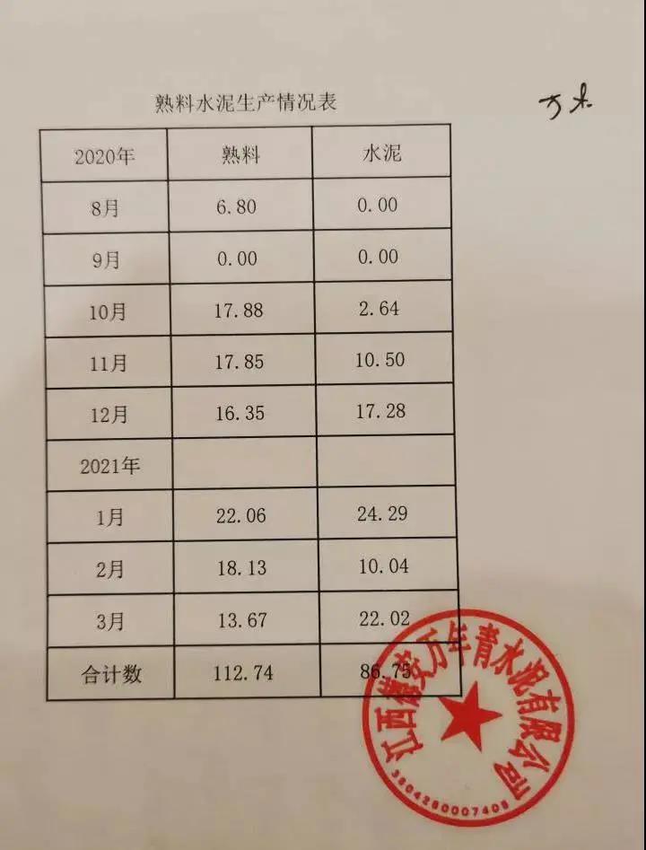 圖2 德安萬年青水泥有限公司熟料生產(chǎn)臺(tái)賬。截至今年3月底,已累計(jì)生產(chǎn)水泥熟料112.74萬噸