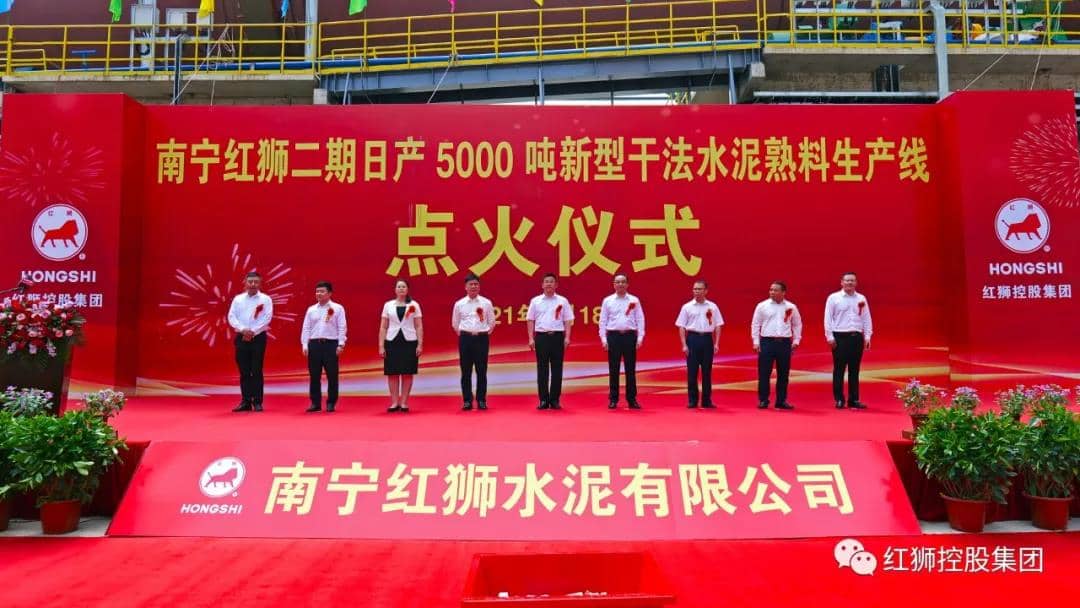 盛夏武鳴,欣欣向榮。5月18日上午10時38分,紅獅集團南寧紅獅二期日產(chǎn)5000噸新型干法水泥熟料生產(chǎn)線順利點火投產(chǎn),項目總投資約15億元、年產(chǎn)高標號水泥200萬噸。