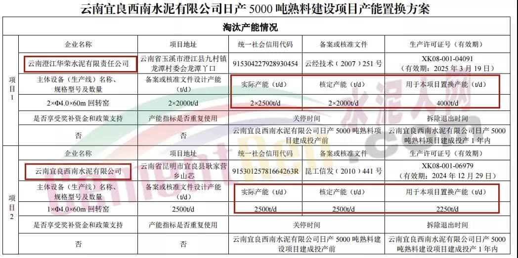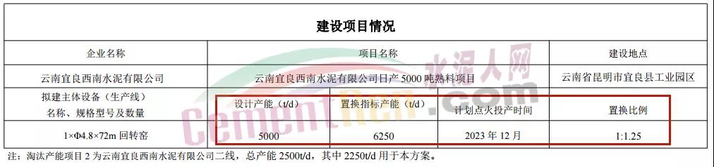 日前,云南省工業和信息化廳發布《云南宜良西南水泥有限公司日產5000噸熟料建設項目產能置換方案公示》。