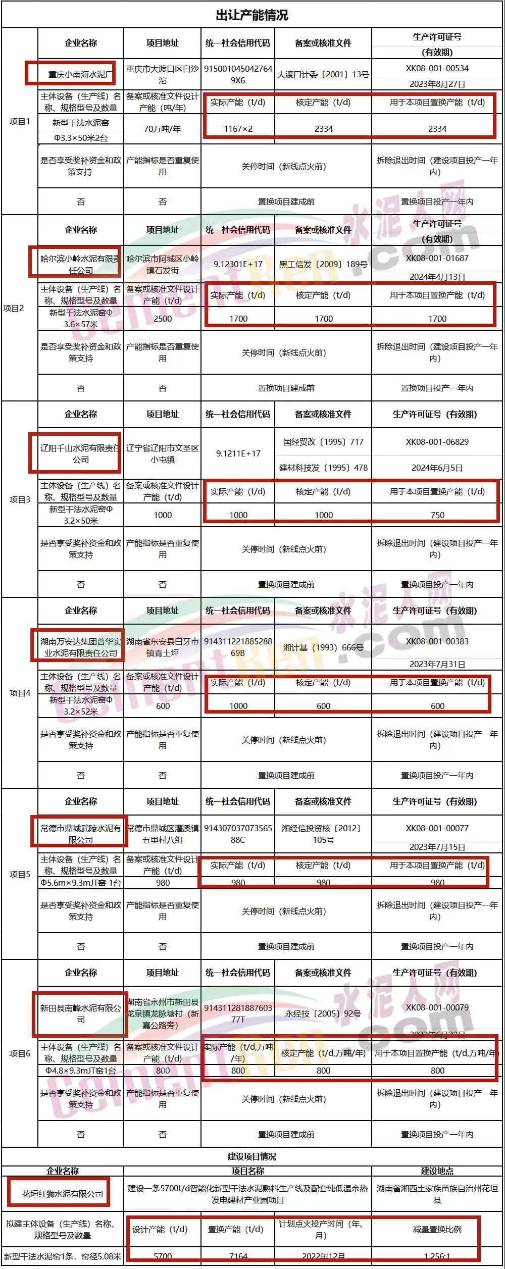 同期,湖南省工業和信息化廳發布《關于組織召開花垣紅獅水泥有限公司日產5700噸新型干法水泥熟料生產線建設項目產能置換方案聽證會的公告》稱,擬組織召開花垣紅獅水泥有限公司日產5700噸新型干法水泥熟料生產線建設項目產能置換方案聽證會。