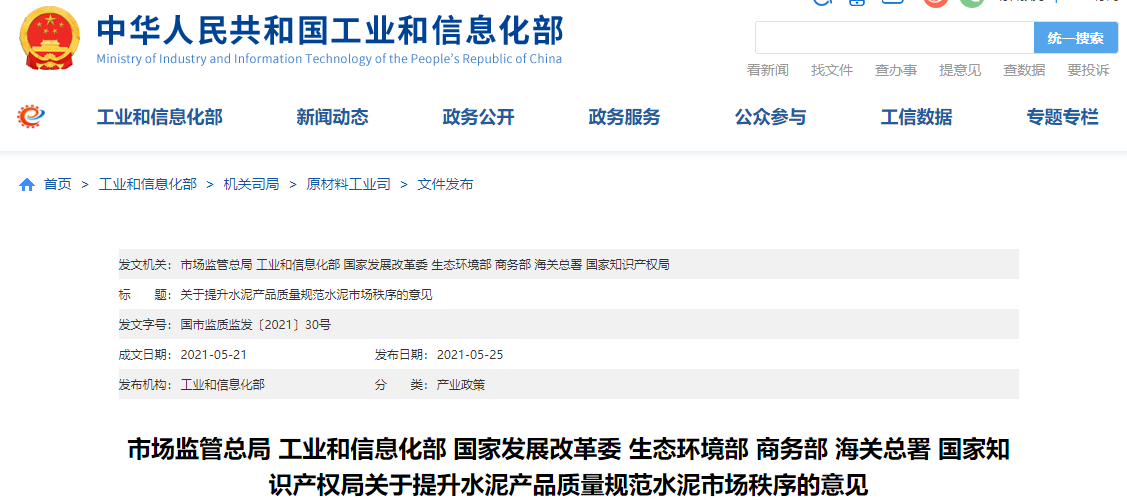 日前,國家市場監管總局、工業和信息化部、國家發展改革委、生態環境部、商務部、海關總署和國家知識產權局聯合印發了《關于提升水泥產品質量規范水泥市場秩序的意見》(下簡稱“《意見》”)。