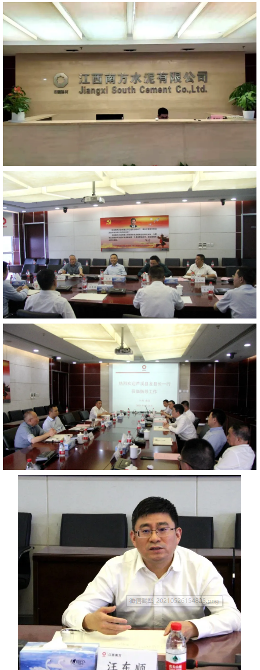 汪東順對(duì)龍萍一行前來考察洽談表示歡迎,感謝蘆溪縣委、縣政府對(duì)蘆溪南方水泥有限公司的大力支持。汪順東介紹了江西南方水泥有限公司在水泥熟料生產(chǎn),商混混凝土,骨料生產(chǎn)等方面的基本情況,及公司“十四五”期間的發(fā)展規(guī)劃,并提出將加快推進(jìn)蘆溪南方水泥項(xiàng)目在產(chǎn)能置換、可研初稿、企業(yè)入園等方面的工作。