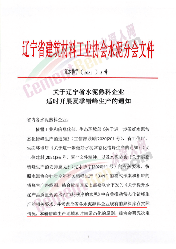 日前,遼寧省建筑材料工業協會水泥分會發布《關于遼寧省水泥熟料企業適時開展夏季錯峰生產的通知》稱,依據推動常態化錯峰生產相關文件要求,并考慮全省各水泥熟料企業現有的熟料庫存實際情況,本著錯峰生產地域和時間常態化的原則,經協會研究決定于六月份繼續在全省范圍內適時有效地開展水泥熟料企業的首次夏季錯峰生產。