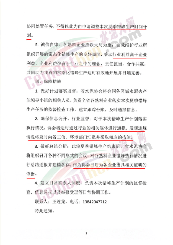 3. 做好總結分析:此輪夏季錯峰生產結束后,省水泥協會將組織召開各種不同形式的會議,對各熟料企業錯峰執行情況進行總結通報并建檔備存,作為協會日后為各企業岀具相關證明的依據。