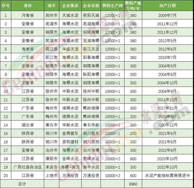 2020年11月,江蘇溧陽市人民政府網(wǎng)站發(fā)布一則產(chǎn)能置換公告,公告內(nèi)容為退出6條生產(chǎn)線,以置換新建兩條10000t/d熟料水泥智能制造二代示范線。