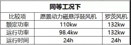 今年3月份,山東省煙臺市某水泥廠因生產規模擴大、設備升級改造,于愿景動力購買了一臺磁懸浮鼓風機,在風機運行了60天后,愿景動力對該水泥廠進行了第二次客戶回訪與設備的維護工作。 發現在相同工況與運行時間下,愿景動力磁懸浮鼓風機比傳統的羅茨風機要節能約32%左右。