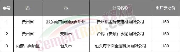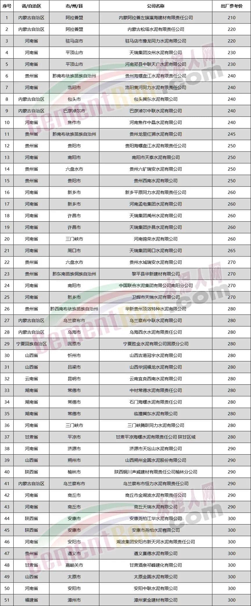 備注:以上數據來源于水泥人網信息中心,如有差池,請以實際數據為準!