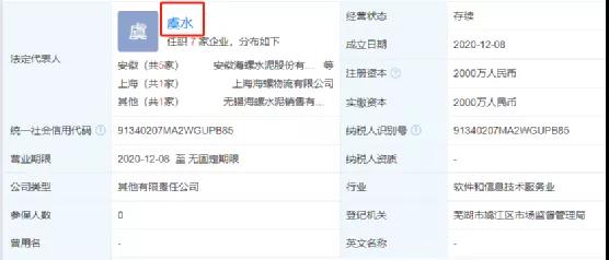公開消息顯示,安徽海慧供應(yīng)鏈科技有限公司為安徽海螺水泥股份有限公司控股企業(yè),法定代表人為海螺水泥總經(jīng)理助理、董秘虞水。