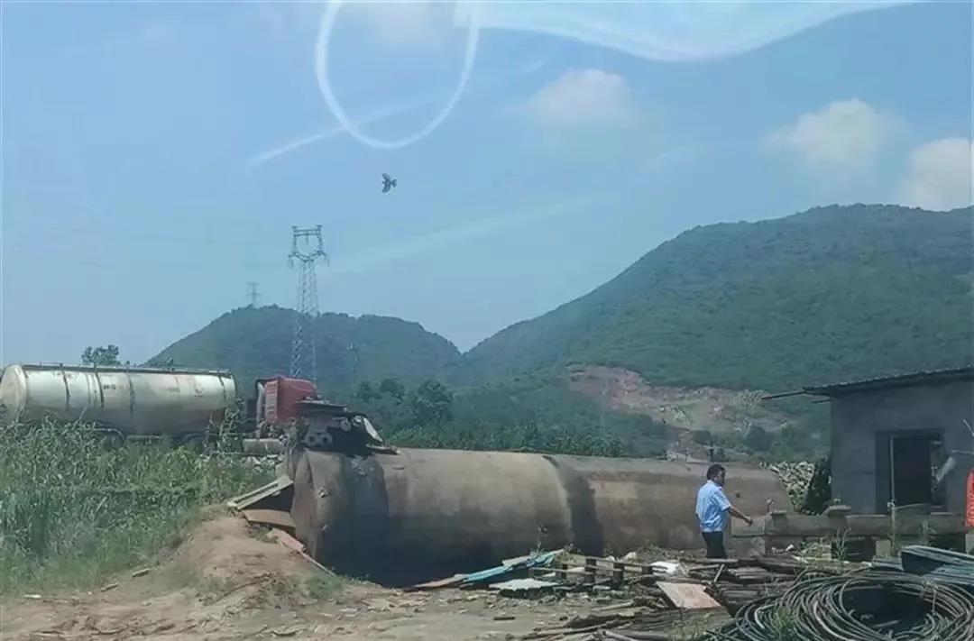 儲油罐旁邊,還放著5個疑似氧焊的氧氣瓶。儲油罐距離華新水泥生產線,距離大約僅100多米遠。