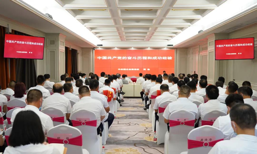 大會首先由來自湖北省省委黨校黃儉副校長作了“中國共產黨的奮斗歷程和成功經驗”的專題講課。向與會人員講述了黨的百年奮斗史,用鮮活的事例和富有影響力的人物闡明了沒有共產黨就沒有新中國的深刻道理,引導全體黨員學黨史,頌黨恩,跟黨走。黨課寓意深遠,讓與會人員倍感振奮,受益匪淺。