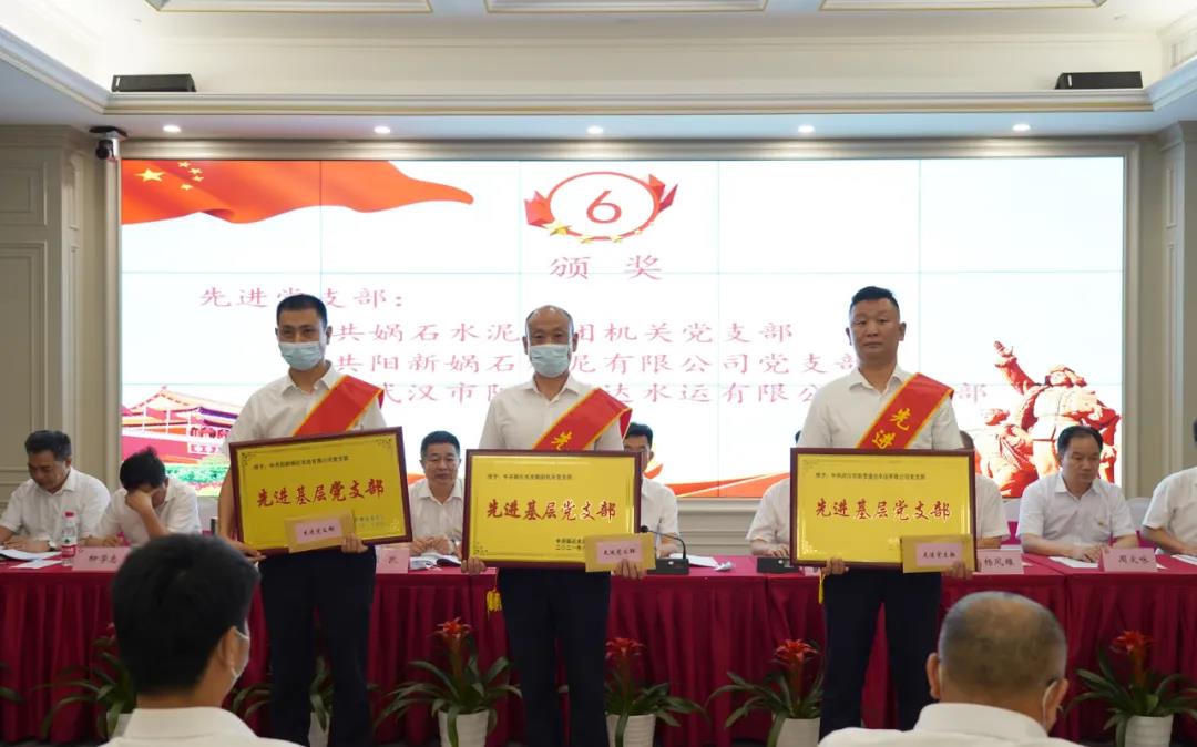 集團黨委書記及黨委成員分別向中共媧石陽新片區委員會頒發了先進基層黨委獎牌;向中共陽新媧石水泥有限公司黨支部、中共媧石水泥集團機關黨支部、中共武漢市陽邏通達水運有限公司黨支部頒發了先進基層黨支部獎牌,向杜志軍、陳陽、汪碧云、朱華青、程全安、陳炳華、陳春旺、邱國輝朱志超、胡毅、馬節喜、周亮、葉福生、吳平、葉化雨等15名優秀共產黨員頒發了榮譽證書。