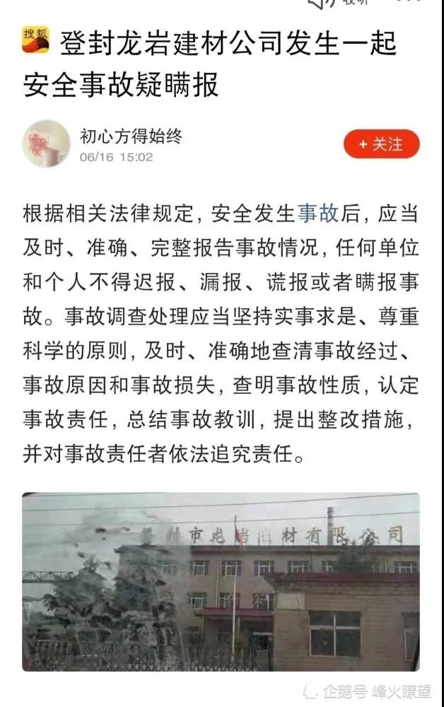 落實事故上報制度,就是為了規范生產安全事故的報告和調查處理,落實生產安全事故責任追究制度,防止和減少生產安全事故。在此,希望登封市相關部門就此事故嚴查并向外公布調查處理結果。