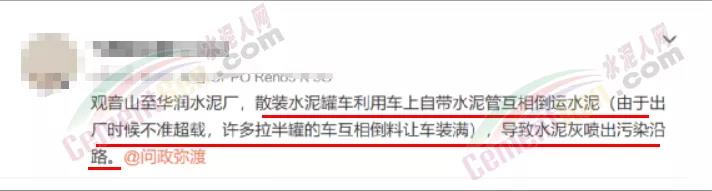 日前,有網友稱:“觀音山至華潤水泥廠,散裝水泥罐車利用車上自帶水泥管互相倒運水泥(由于出廠時候不準超載,許多拉半罐的車互相倒料讓車裝滿),導致水泥灰噴出污染沿路”。