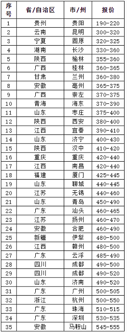 相關(guān)市場人士表示,這也預(yù)示著貴陽區(qū)域水泥價格整體下調(diào)30元/噸,PO42.5散裝水泥報價區(qū)間為190-220元/噸。
