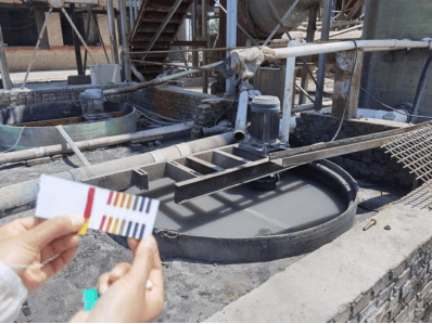 圖10山西博天耐火材料有限公司煅燒回轉爐脫硫漿液循環池內的脫硫漿液呈強酸性