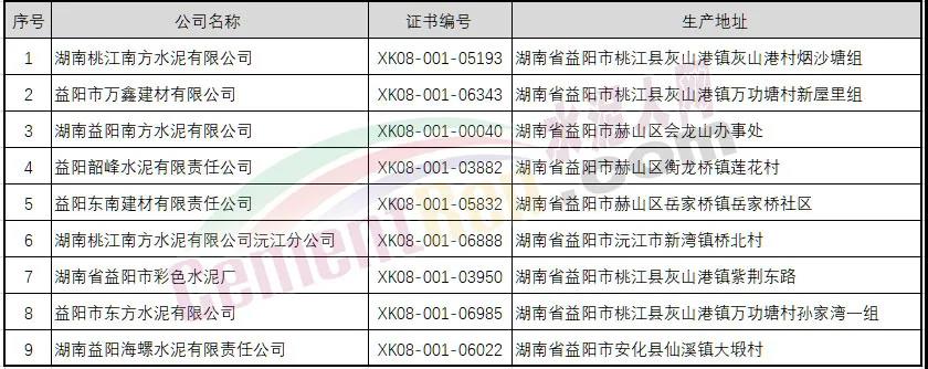據(jù)市場監(jiān)管總局工業(yè)品生產(chǎn)許可證辦公室數(shù)據(jù)顯示,位于湖南益陽市的水泥生產(chǎn)企業(yè)共有包括南方水泥、海螺水泥子公司在內(nèi)的9家企業(yè)。