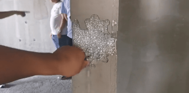 近日,陜西省渭南市蒲城縣西豐文苑小區3號樓、5號樓正交房,不少業主卻發現,新房隔墻卻是用泡沫和著水泥制成的,有業主砸開部分隔墻后,斷茬處用手能摳下泡沫顆粒,擔憂不安全。