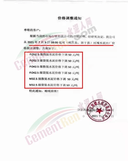日前,分宜海螺水泥有限責(zé)任公司發(fā)價格調(diào)整通知稱,根據(jù)當(dāng)前的市場行情和公司的產(chǎn)銷形勢,決定從7月9日上午8時起對峽江縣、新干縣區(qū)域水泥出廠價格作出調(diào)整,各標(biāo)號水泥價格下調(diào)50元/噸。