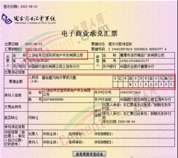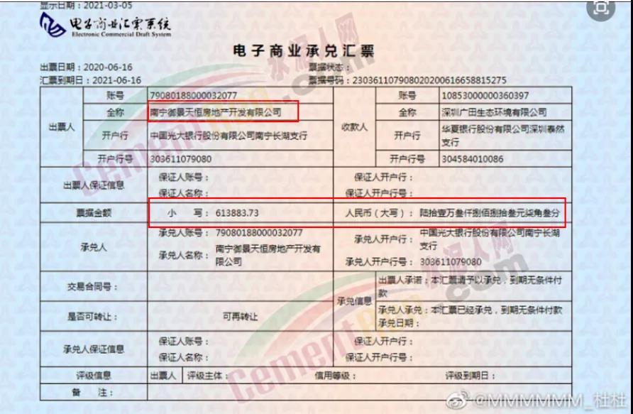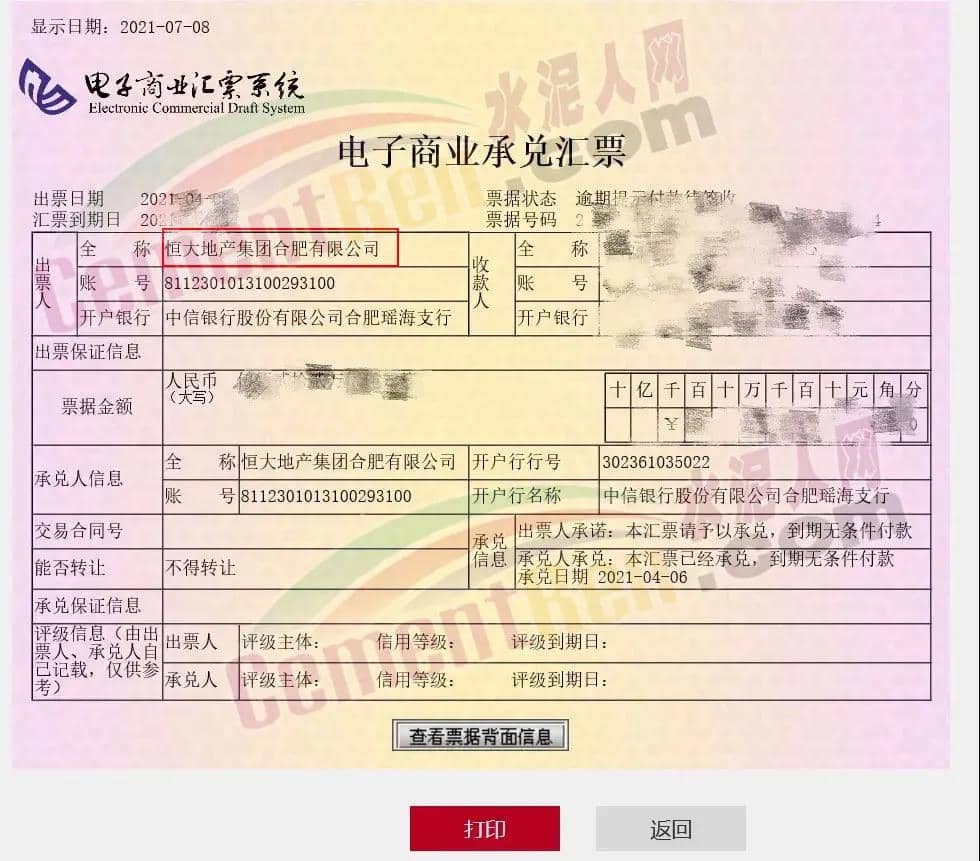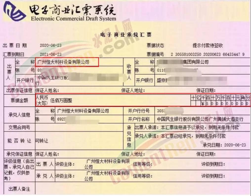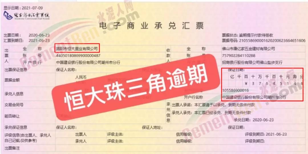 最近恒大一系列動作讓人看到了恒大降負債的決心!但是作為商票也一樣是恒大的負債,是不是也應該及時給予兌付?6月30日已過去一周多了,到處是恒大一條紅線轉綠的新聞,這里我們看到了恒大降負債的決心,但是恒大集團不應該僅僅只是降有息負債,商業(yè)承兌匯票也是其債務的一部分,到期了應該及時兌付,這樣才是真正的在降負債,而且也不失一個大企業(yè)的信用。作為旗下子公司廣州恒大材料設備有限公司是不是應該積極響應集團制定的政策?