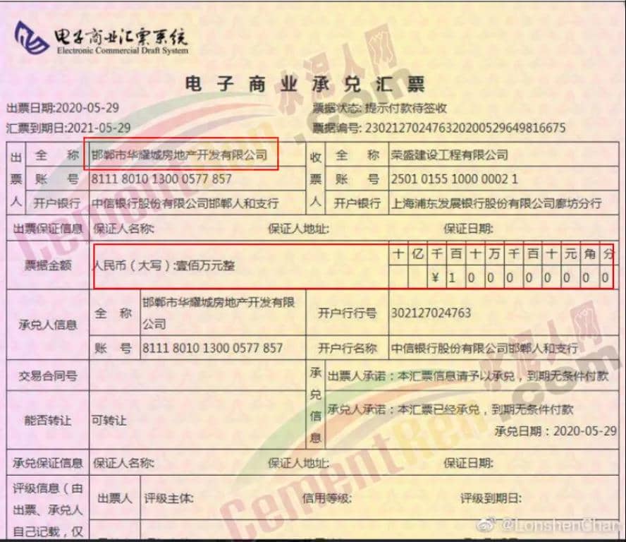 “商票逾期一個多月還要談展期?”一債權人公司人員合法持有恒大地產(chǎn)集團控股的子公司:邯鄲華耀城房地產(chǎn)開發(fā)有限公司開具的商業(yè)承兌匯票一張100萬元,現(xiàn)已逾期一月多。