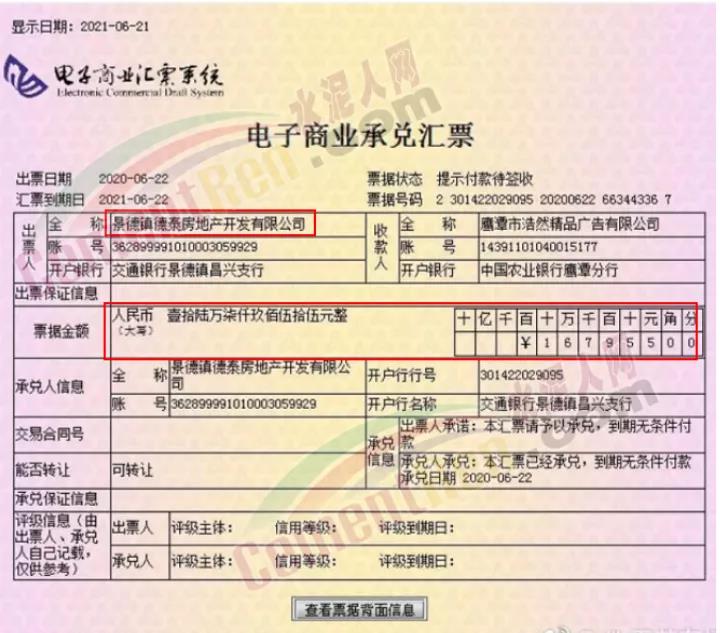 據(jù)水泥人網(wǎng)了解,近年來國內承兌匯票逾期事件頻發(fā),給很多終端企業(yè)造成了很大的經(jīng)濟損失,在近兩年的兩會中,很多人大代表紛紛提議取消承兌匯票,但最終如泥牛入海,并沒有得到重視。因此,國內承兌匯票違約事件依然沒有得到有效解決。
