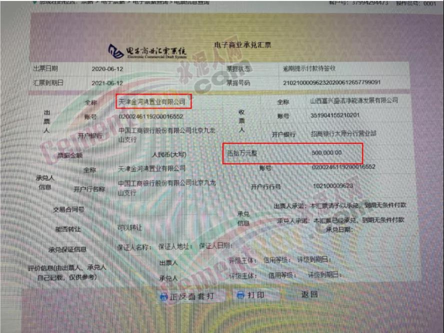 山西富興盛潔凈能源公司員工稱,公司因業(yè)務往來收到多張由實地地產(chǎn)集團(天津金河灣置業(yè)有限公司)簽發(fā)和承兌的商業(yè)承兌匯票,卻遲遲沒有付款,已知款項50萬。