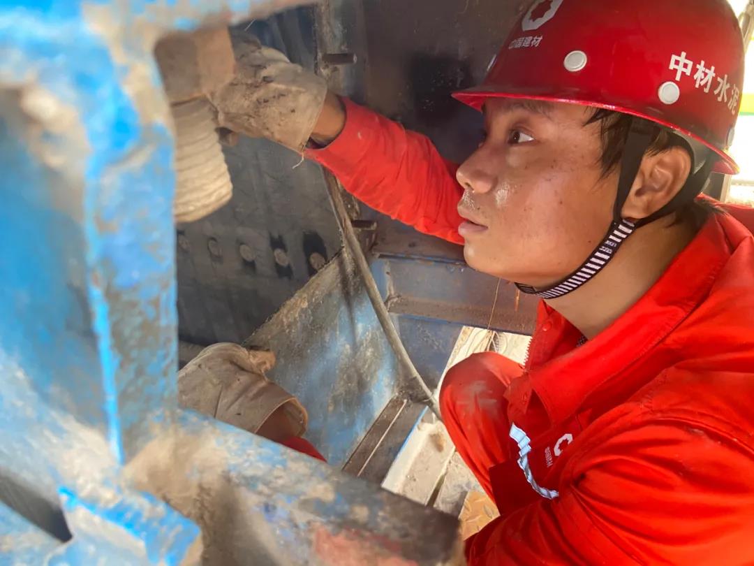 中材株洲原料燒成車間凌杰對提升機進行檢修