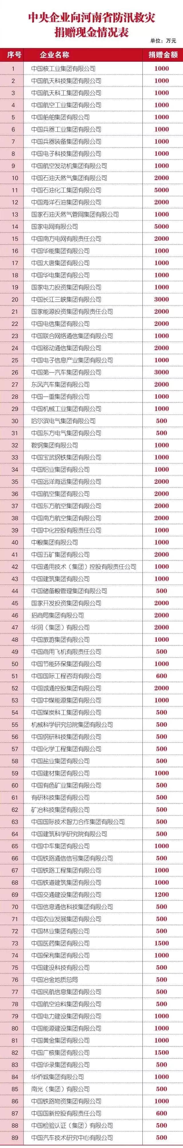 據(jù)國資委消息,國資委和中央企業(yè)全力支援河南省做好汛災(zāi)搶險(xiǎn)救援,進(jìn)一步加大捐贈(zèng)力度,截至7月22日19點(diǎn),89家中央企業(yè)累計(jì)向河南省捐贈(zèng)現(xiàn)金達(dá)10.44億元。