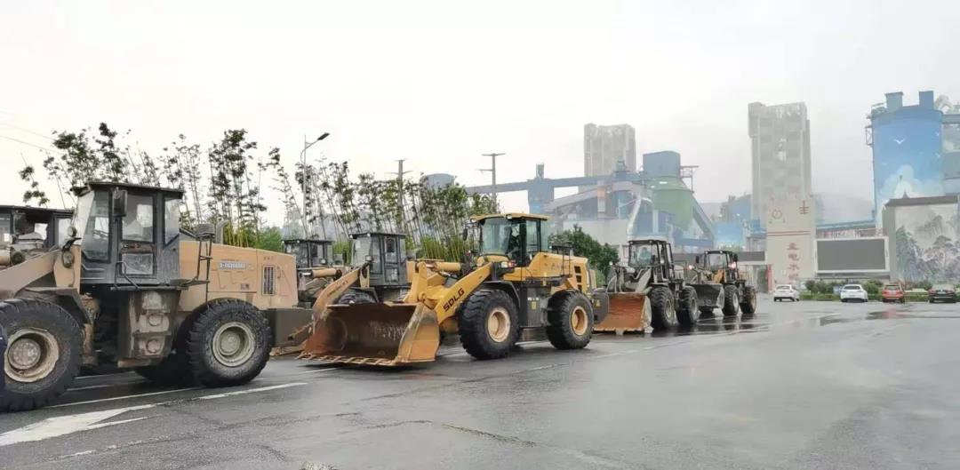 孟電水泥十余輛鏟車整裝待發(fā)