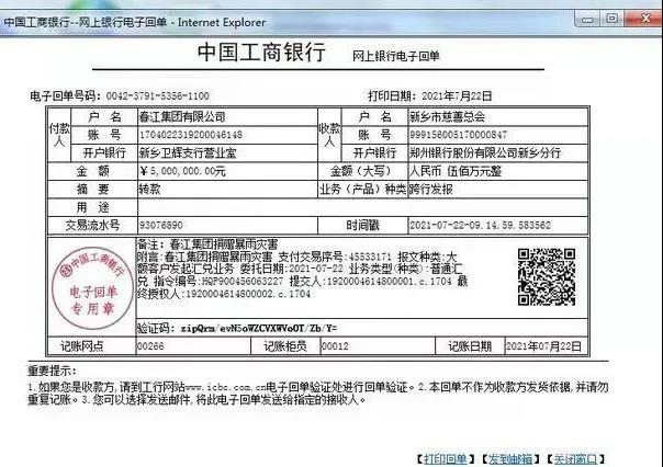 春江集團(tuán)捐款500萬支援防汛:7月22日上午,“全國優(yōu)秀共產(chǎn)黨員”輝縣市張村鄉(xiāng)裴寨村黨支部書記兼村委會(huì)主任、春江集團(tuán)黨委書記裴春亮同志代表集團(tuán)向新鄉(xiāng)市慈善總會(huì)捐款500萬元,用于防汛搶險(xiǎn)救災(zāi)。這是新鄉(xiāng)市慈善總會(huì)收到的第一筆防汛救災(zāi)捐款。