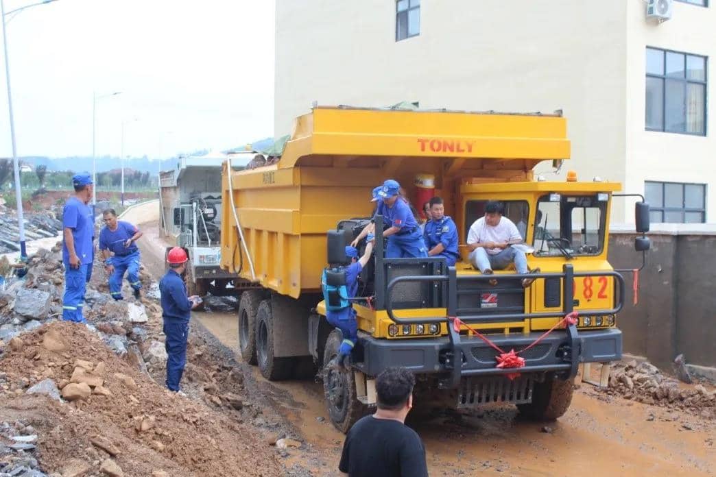 出動(dòng)礦車協(xié)助救援隊(duì)伍前往受災(zāi)區(qū)域