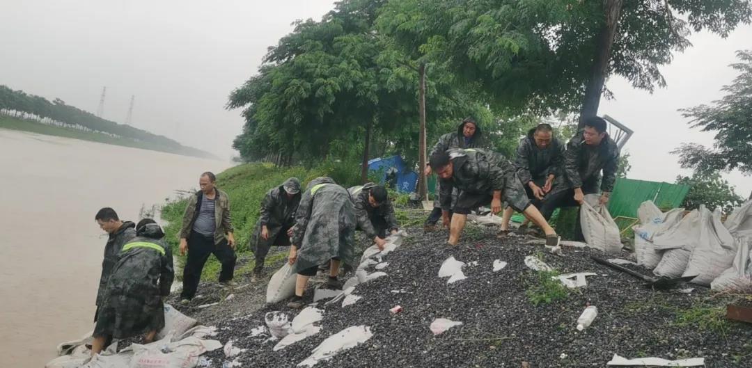公司防汛工作領(lǐng)導(dǎo)小組、突擊隊(duì)員快速投入到搶險(xiǎn)第一線,面對洪水義無反顧、冒雨而沖扛沙袋掄鐵鍬。