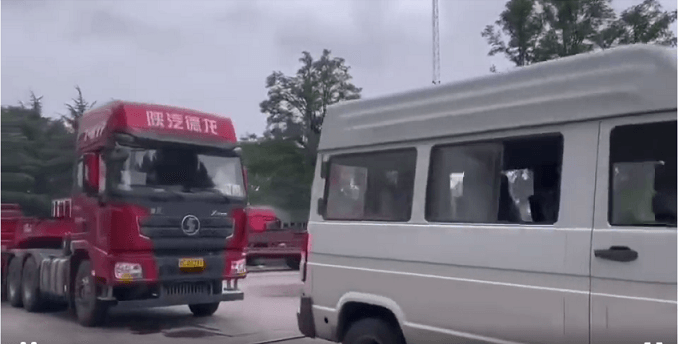 物資車隊(duì)面對途中瓢潑大雨,大部分道路阻斷,多處山體塌方及路面。50cm以上的積水,毅然堅(jiān)定前行。