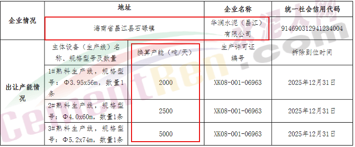 關于華潤水泥(昌江)有限公司水泥熟料產能置換出讓情況公告