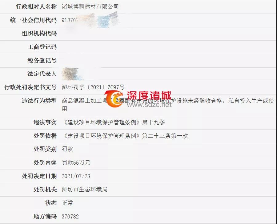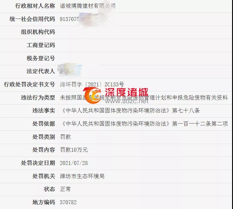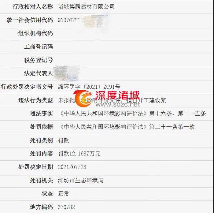 諸城博騰建材有限公司被罰77.1687萬元