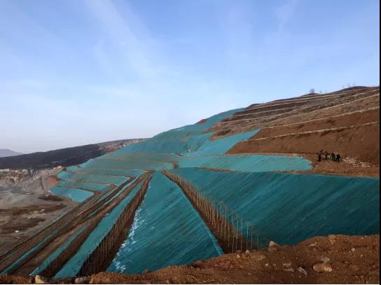 該項目所處地區為中原地區,氣候干旱少雨,礦山附近水源較少,為了保證種植的樹木花草能夠成活,在進行噴播綠化過程中,精心調配噴播土的成分組成,灌木、喬木、冷暖花草的選擇和搭配,在噴播完成后,及時進行草氈、麥秸、無紡布的覆蓋保濕,有效的保證了出芽率和成活率。