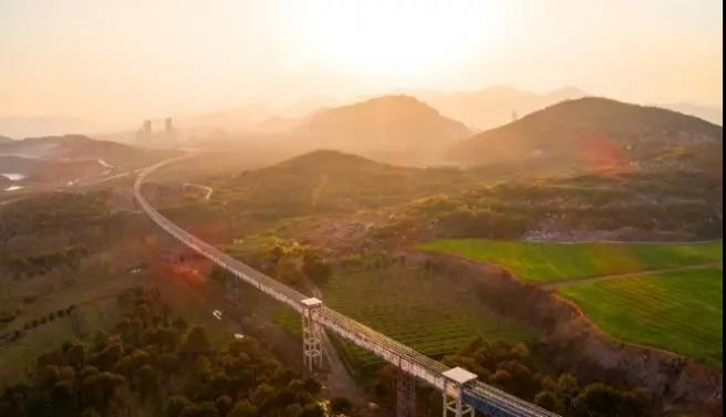 2018年8月,中國建材集團所屬南方水泥積極踐行“綠色青山就金山銀山”的理念,根據浙江長興和安徽廣德環太湖區域水泥熟料生產基地的道路運輸和環境壓力,勇擔責任打造了一條22公里的全國最長熟料“空中運輸走廊”。這條全電物流走廊具有全封閉、全架空、耐高溫等優點,大大緩解了當地公路運輸壓力,減少了揚塵、噪音、尾氣對環境的影響,得到政府部門和周邊居民的交口稱贊,被交通運輸部列入綠色示范項目。