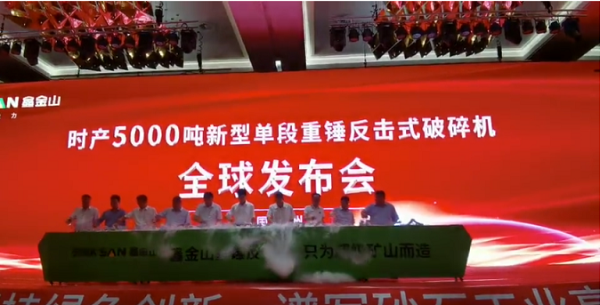 日前,棗莊鑫金山智能裝備有限公司(以下簡稱“鑫金山”)又一創新成果全球首發:時產5000噸新型單段重錘反擊式破碎機新品發布會成功舉行。