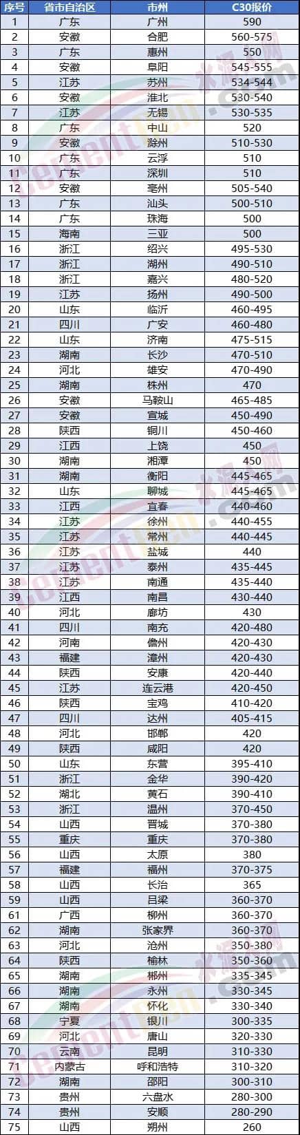 從近期各區域混凝土報價來看,并未出現大幅波動,相關行業人士表示,近期水泥市場大幅漲價正逐步落實中,對商品混凝土市場的影響暫時未體現出來。