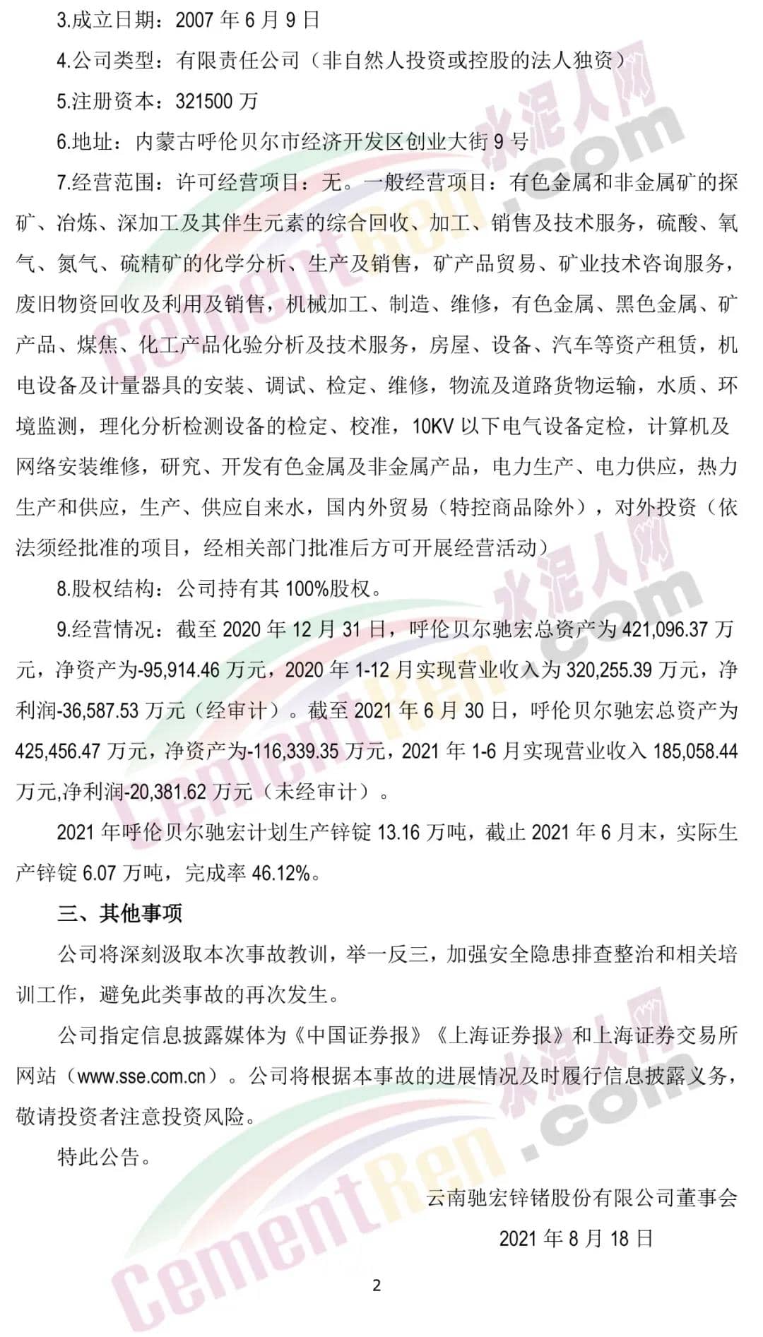 馳宏鋅鍺還表示,目前已按照呼倫貝爾市應急管理局的上述要求,立即組織呼倫貝爾馳宏停產并全面開展安全隱患排查、整治和安全教育培訓相關工作;并正積極配合相關部門的調查工作,事故的具體原因、相關責任、停產時間和對公司的影響有待進一步核實;同時本次事故未對呼倫貝爾馳宏其他生產區域和周邊環境造成影響。