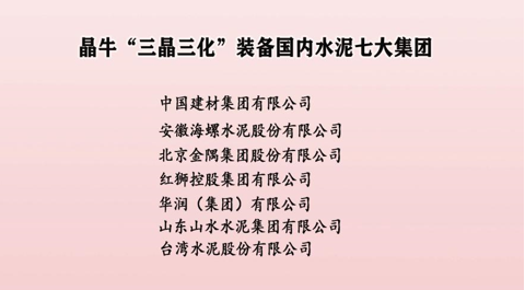 四、中國(guó)十大水泥集團(tuán)中的七大集團(tuán)分布的26個(gè)省的300條生產(chǎn)線的20多個(gè)部位裝備了晶牛“三晶三化”設(shè)備,均收到理想效果