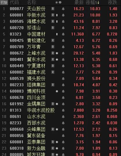 昨日(9月1日),水泥上市公司大爆發,多股出現一字漲停。截止當日收盤天山股份、華新水泥盤中漲停。