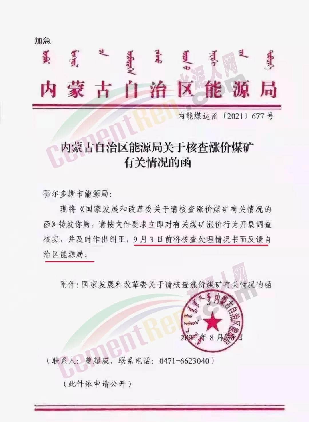 同日,內蒙古自治區能源局發《關于核查漲價煤礦有關情況的函》給鄂爾多斯市能源局要求立即對有關煤礦漲價行為開展調查核實,并及時作出糾正,9月3日前將核查處理情況書面反饋自治區能源局。
