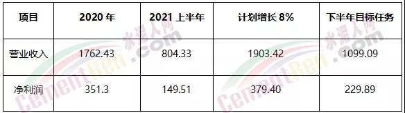如2021年完成增收8%的目標(biāo),營(yíng)業(yè)收入就要達(dá)到1903.44億元,凈利潤(rùn)達(dá)到379.4億。除去上半年已經(jīng)完成的,下半年?duì)I業(yè)收至少達(dá)到1099.09億元,凈利潤(rùn)達(dá)到229.89億元,任務(wù)之艱巨可想而知。