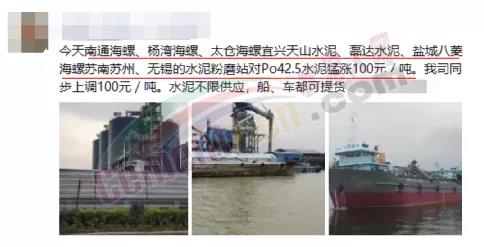 16日當天,無錫金久水泥、無錫市天裕建材、宜興市勝達水泥、宜興市青象水泥、江陰綺星水泥等水泥廠都跟隨海螺水泥調漲了100元/噸。