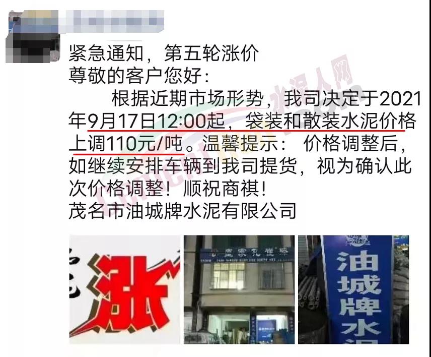 17日一早,經銷商便發消息提示,“龍頭企業領漲,市場價格一日一變,水泥廠限電,水泥供應緊張,但是這個價格似乎有些逆天了,誰也不敢大批量的進貨,市場是亂的,價格是亂的,不知道漲了幾輪,也不知道該怎么報價,早晨還五百多的價格,傍晚就七百元一噸了。”