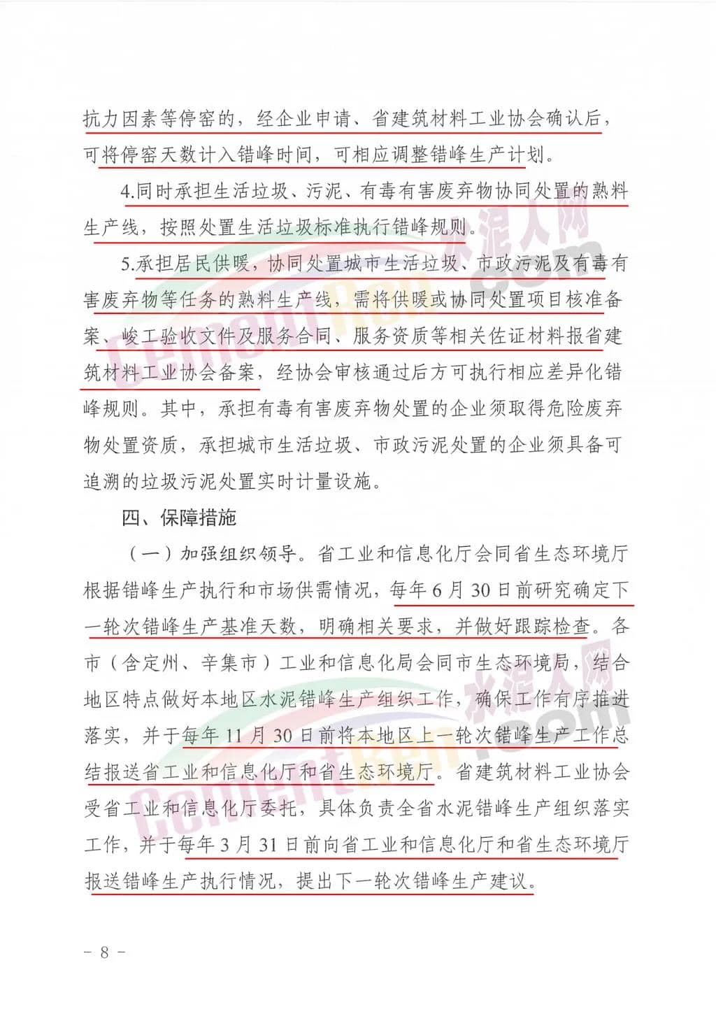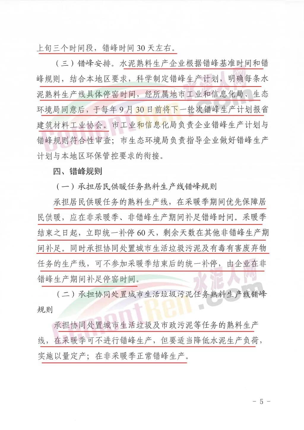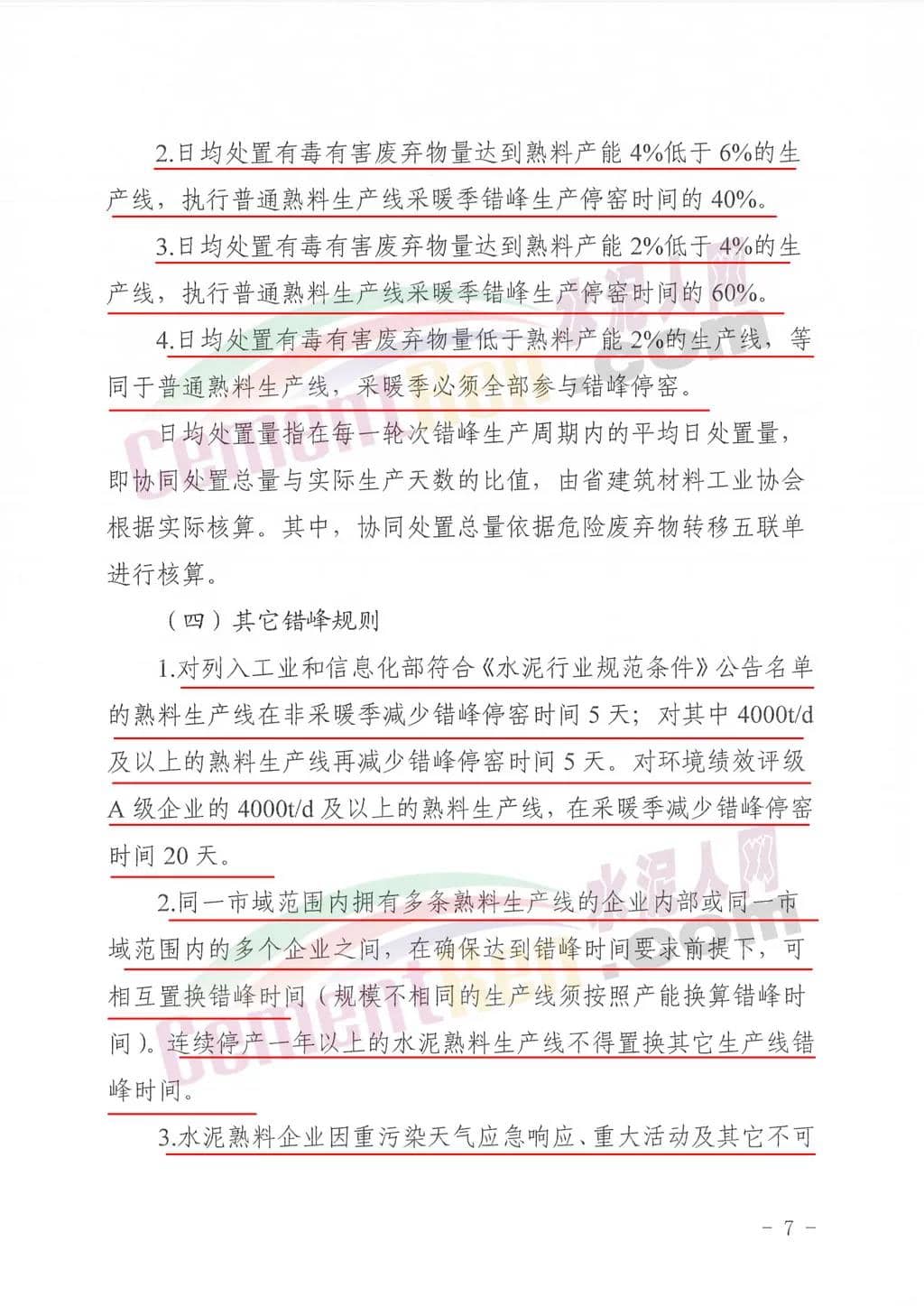 承擔協(xié)同處置有毒有害廢棄物任務熟料生產(chǎn)線錯峰規(guī)則承擔協(xié)同處置有毒有害廢棄物任務的熟料生產(chǎn)線,在采暖季可不進行錯峰生產(chǎn),但要適當降低水泥生產(chǎn)負荷,實施以量定產(chǎn);在非采暖季正常錯峰生產(chǎn)。